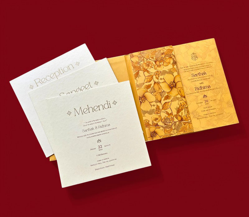 For pre-made cards, printing and general design charges will be extra. Customizations such as logos, invitation card add-ons (e.g., Paper Seal/Wax, Vellum Paper, Dori, Normal/Acrylic/EP Stickers, etc.) will incur additiona