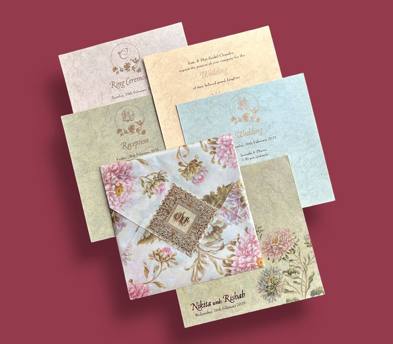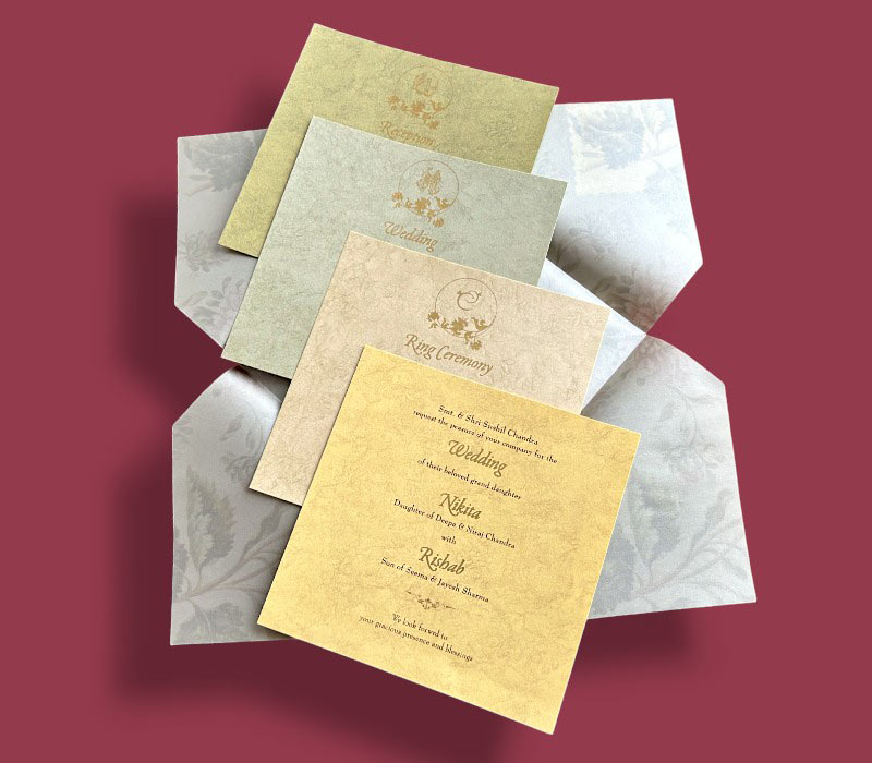 For pre-made cards, printing and general design charges will be extra. Customizations such as logos, invitation card add-ons (e.g., Paper Seal/Wax, Vellum Paper, Dori, Normal/Acrylic/EP Stickers, etc.) will incur additiona