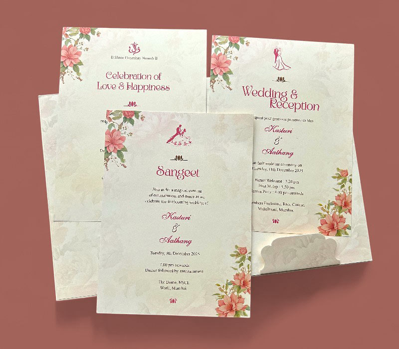 For pre-made cards, printing and general design charges will be extra. Customizations such as logos, invitation card add-ons (e.g., Paper Seal/Wax, Vellum Paper, Dori, Normal/Acrylic/EP Stickers, etc.) will incur additiona